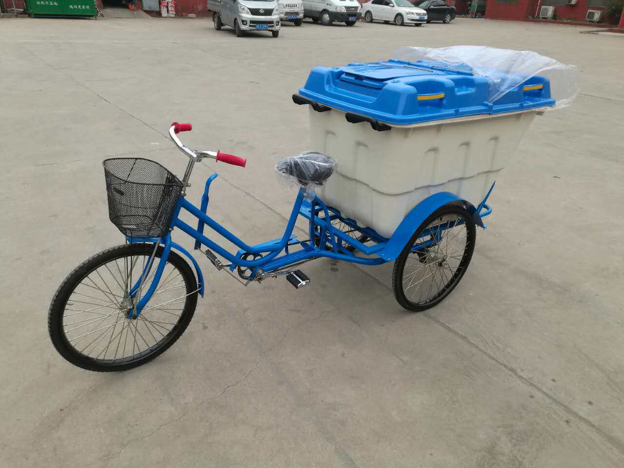 500L plastic barrel manpower foot pedal trampling-cleaning car sanitation tricycle property park road garbage clear and transport