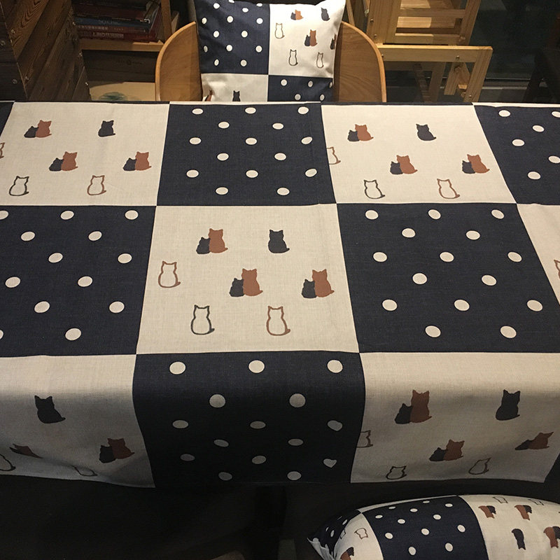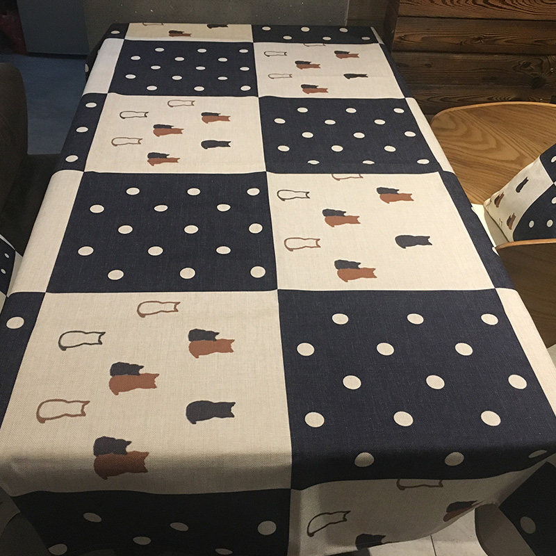 Day Style Cotton Hemp Table Cloth Polo Dot Kitty Chessboard Restaurant Taib Bar Café Bougebouge Bougeb-Taobao