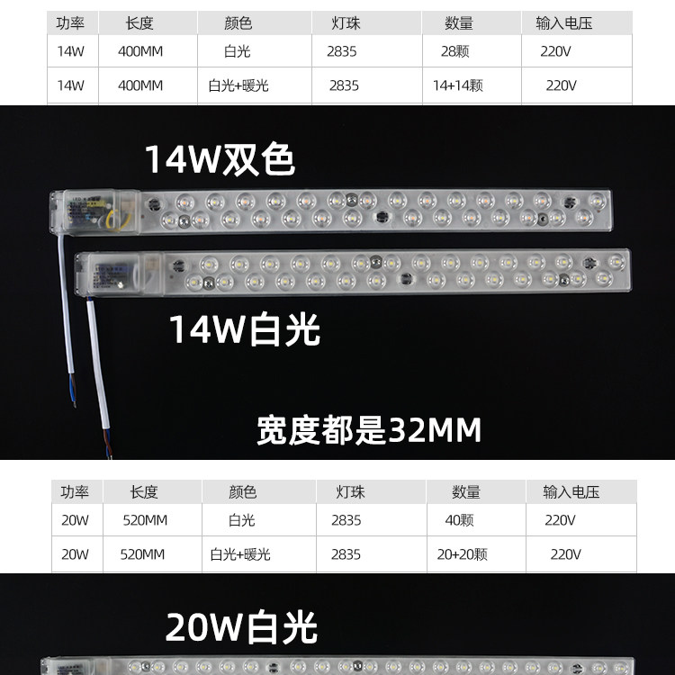 14W White light 14W Two-color 20W white light 20W two-color 20W Warm white light 14W Warm white light