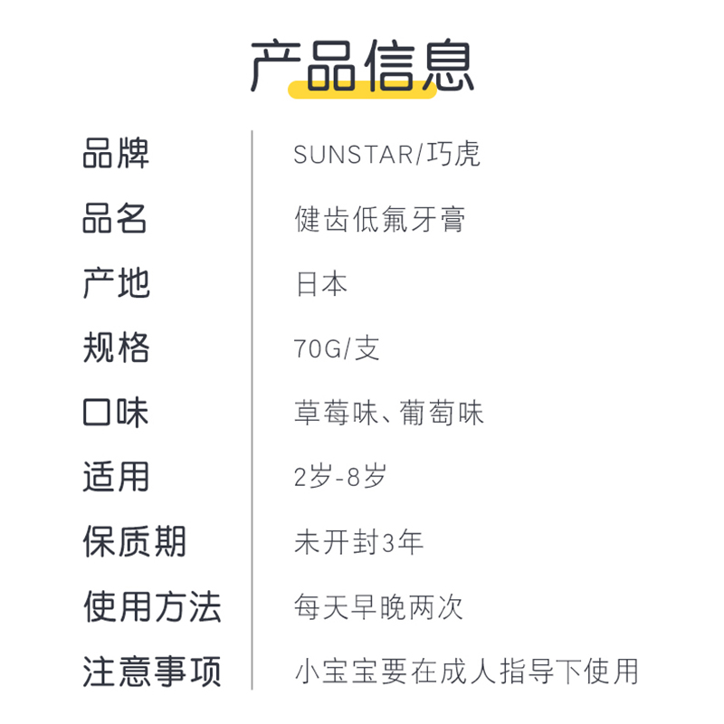 Japanese imports sunstar Qiaohu children can swallow anti-bug tooth baby toothpaste fruit taste 2-3-4-6-8 years old