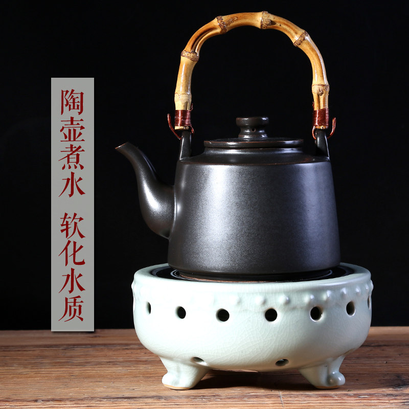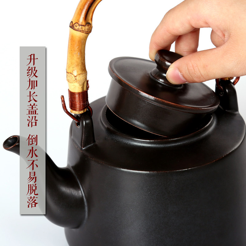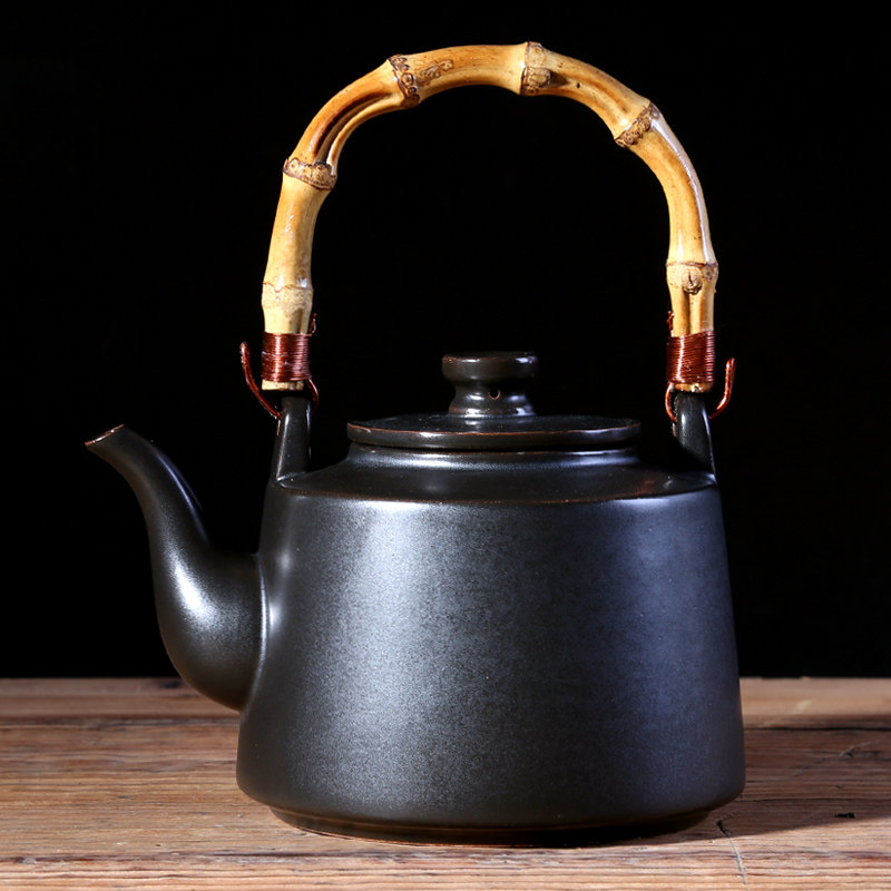 Pottery pot lifting beam pot black crystal furnace teapot boiling teapot tea ceremony kettle kung fu tea set black ceramic large clay pot