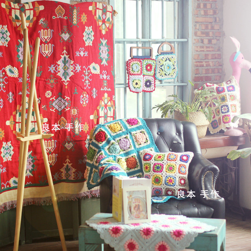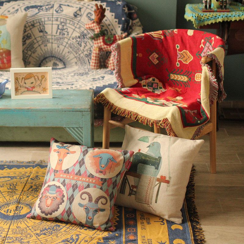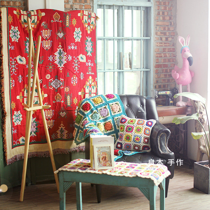 Tibetan style simple Nordic style sofa towel jacquard cotton thread blanket carpet dust cover chair cushion knitted blanket