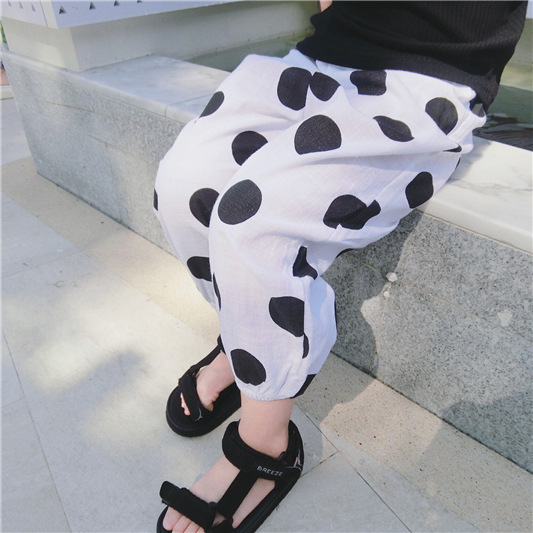 Girls ' anti-mosquito pants 2021 summer new children's clothing Harlan pants all-round casual cotton and hemp inner pants seven-point pants 1314