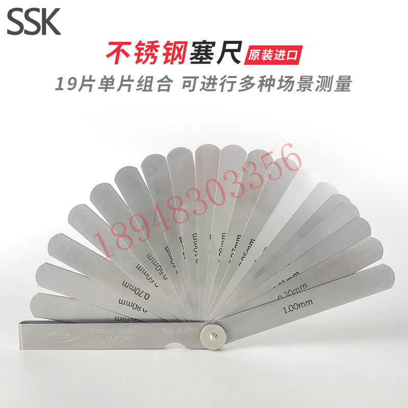 Original imported Japanese SSK thickness gauge 100ML 150ML feeler gauge 0 01-1 0MM 19 pieces of gap film