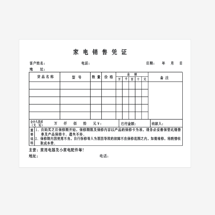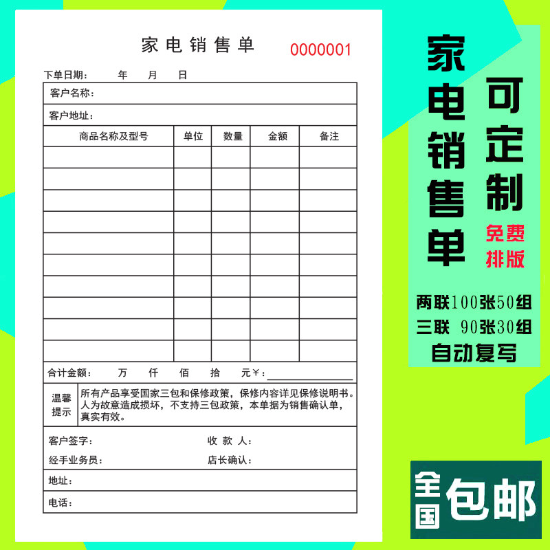 Home appliance sales list Tmall excellent store Special bill electrical appliance store receipt sales voucher document invoicing