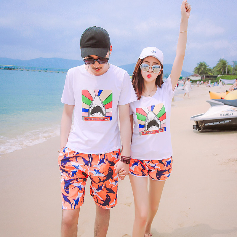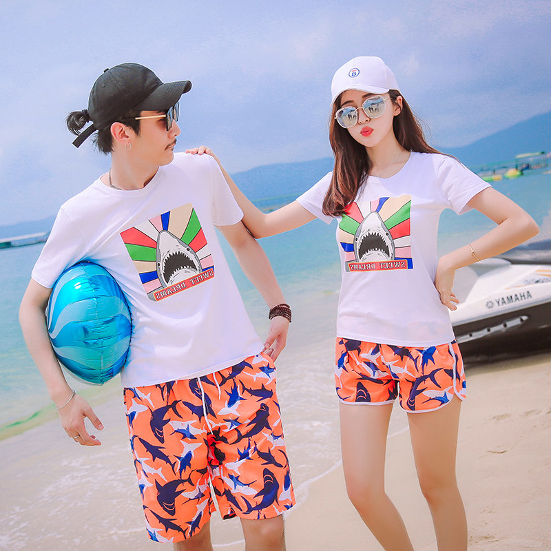 Summer Ystack New Seaside Summer Loose Printed Couple T-shirt Short Sleeve Men And Women Beach Dress Shorts Suit Tide