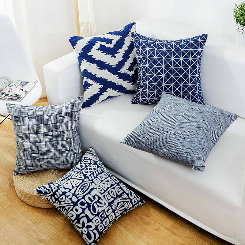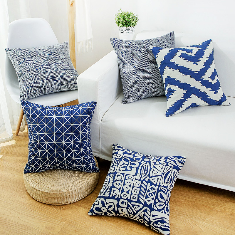 Nordic geometric irregular graphical sofa cushion cushion cover dark blue linen square with no core