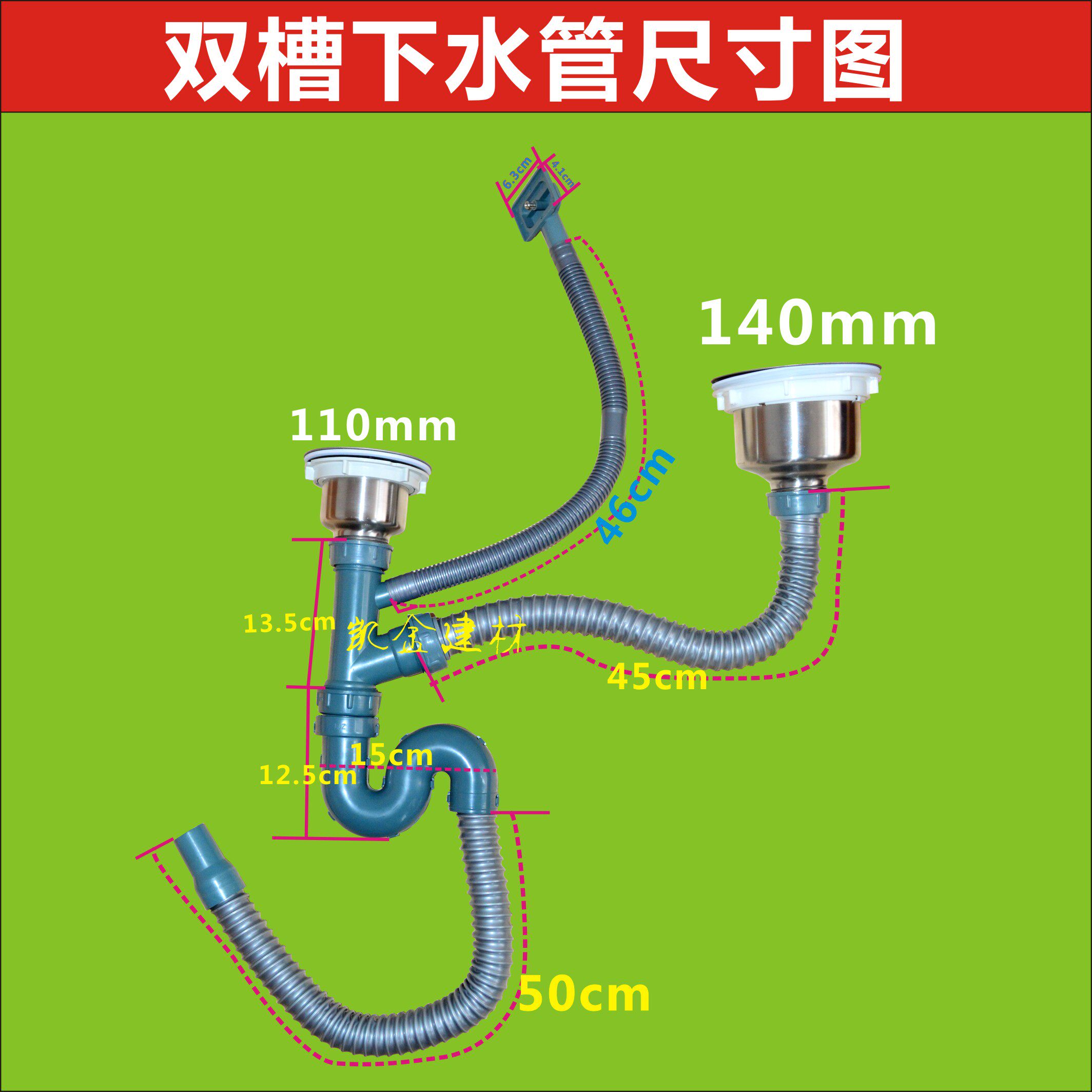 New kitchen sink tank water tank water pipe sewer parts double - trough anti - odor 110 and 140 small heads