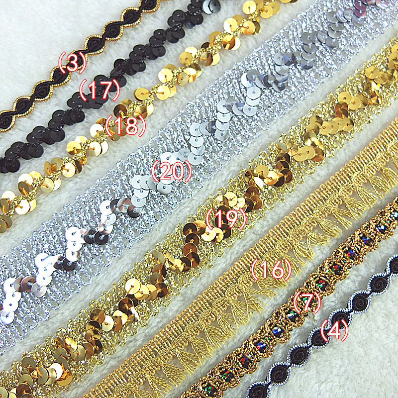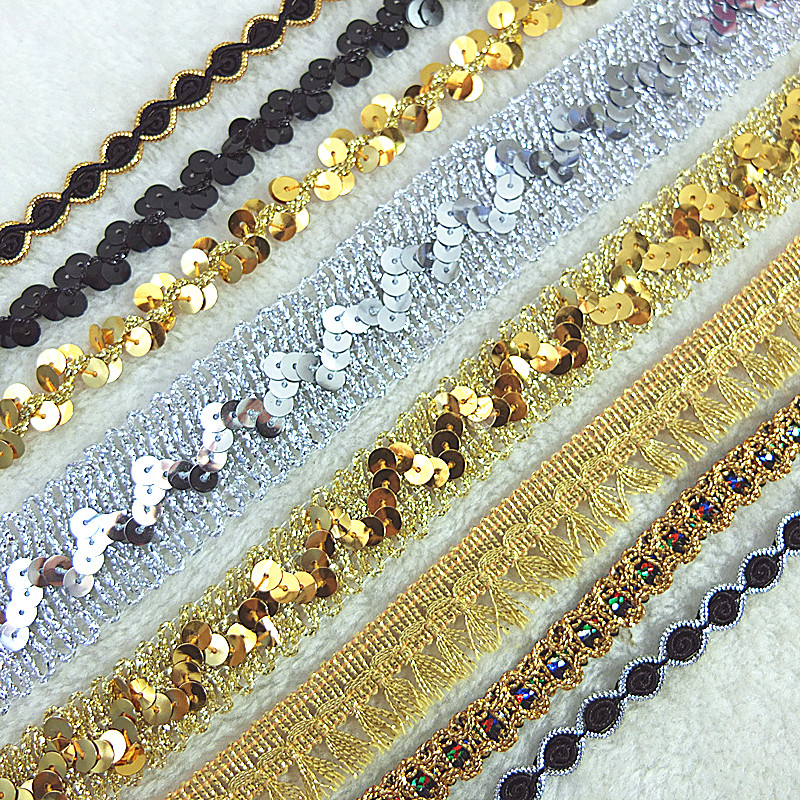 Bai Caihui clothing Gold and silver embroidery crochet jacquard edge baby clothing Fabric material accessories National handmade ribbon