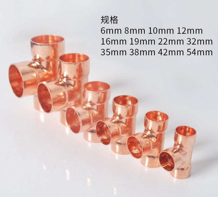 Red copper tee T-joint air conditioning copper pipe tee copper pipe joint copper fittings copper joint copper welding joint
