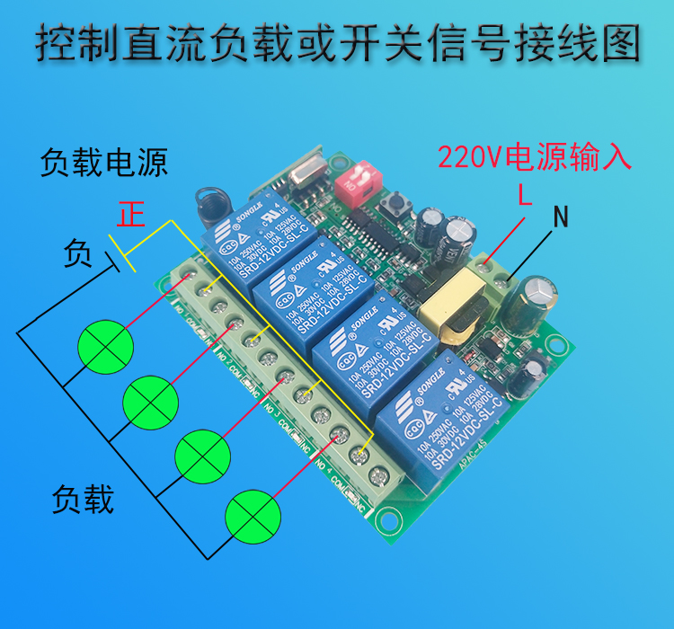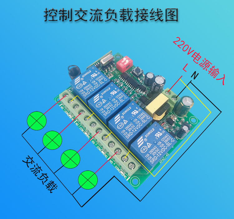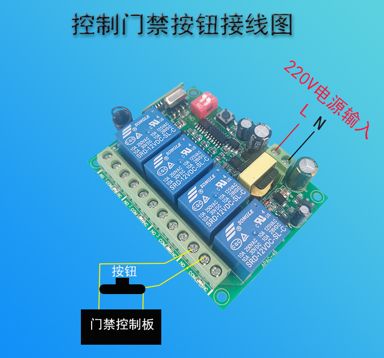 Wireless remote control switch 220V4 road reception controller Access control fence machine motor motor LED wireless remote control
