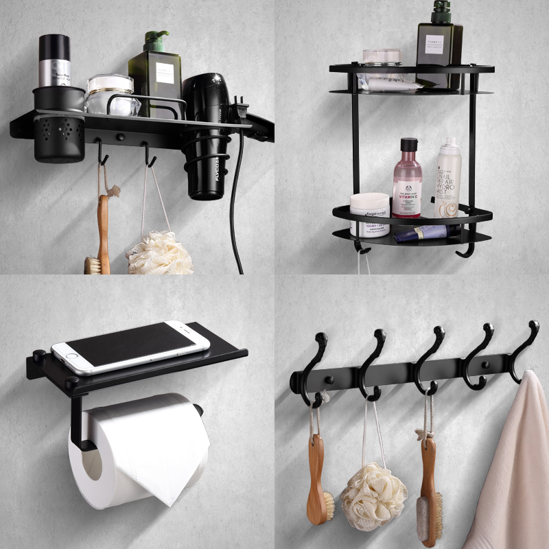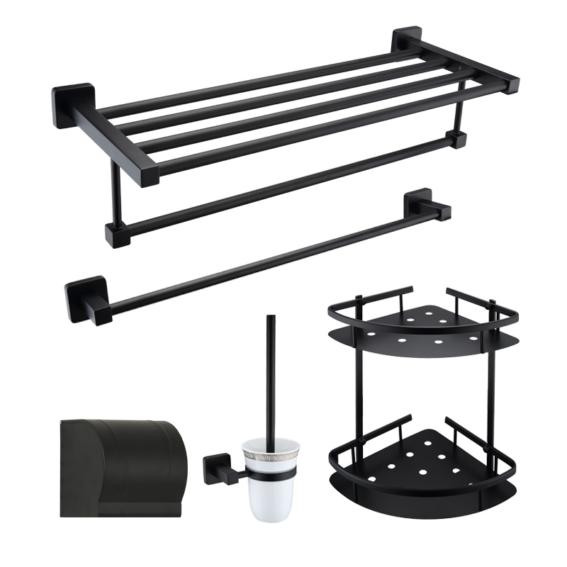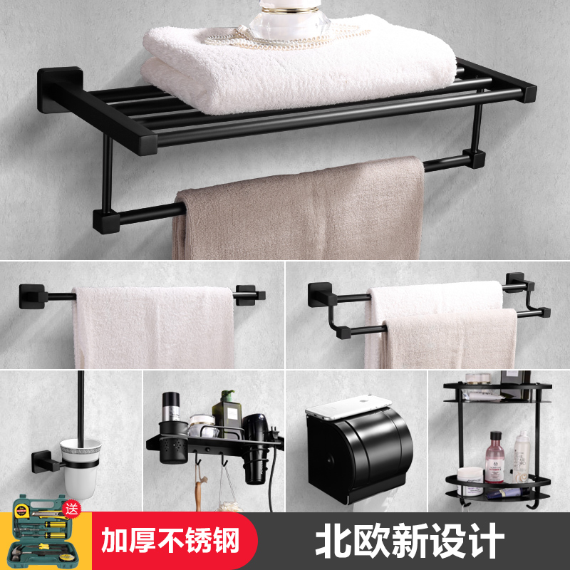 Towel Rack 304 Stainless Steel Suit Black Flushing Cool Room Toilet Bathroom Hardware Pendant Bathroom Bath Towels