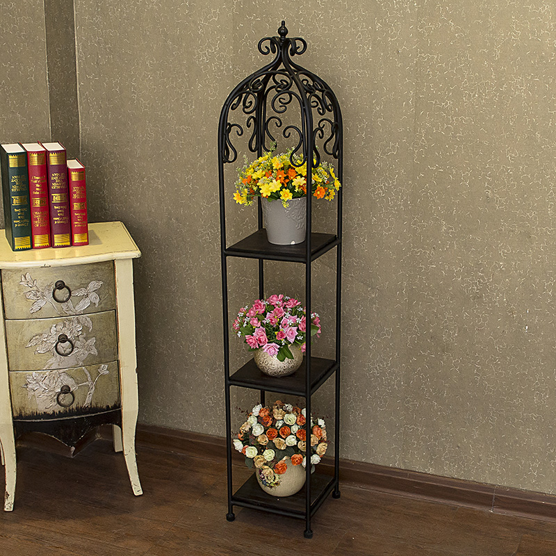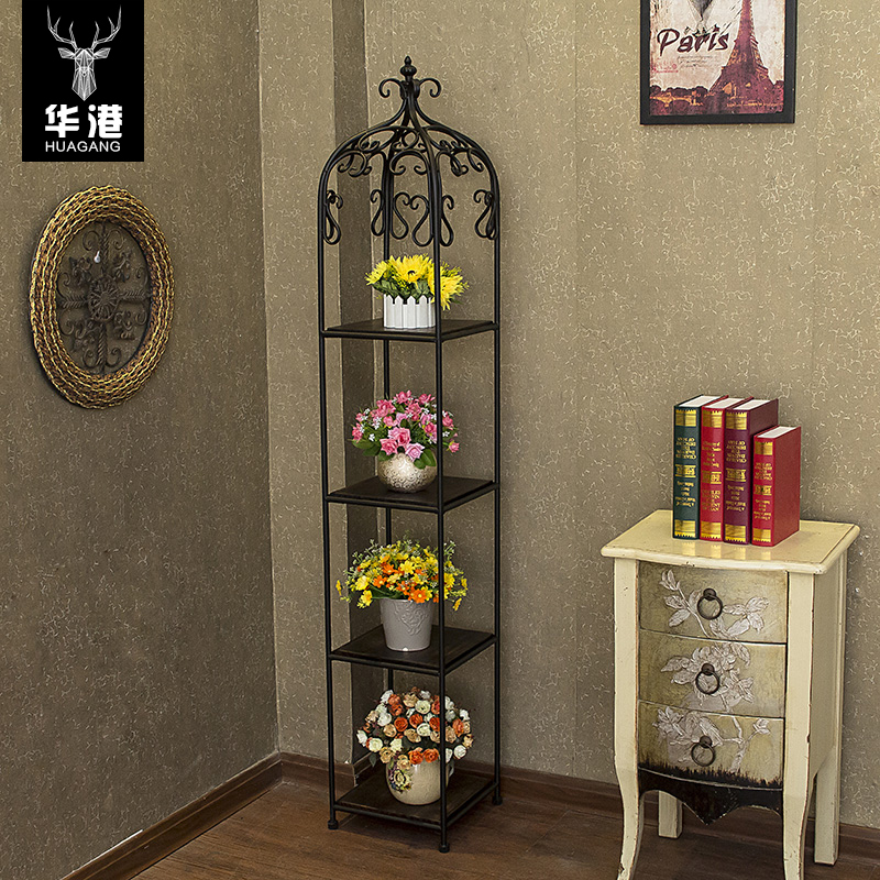 Wrought iron living room flower rack Solid wood indoor multi-layer multi-function bird cage shelf Balcony floor-to-ceiling flower pot plant rack