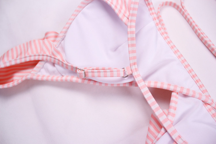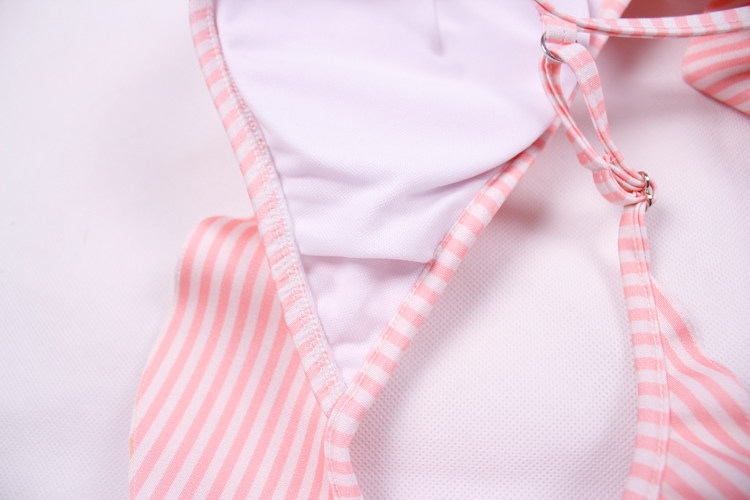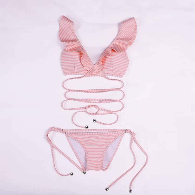 European and American sexy ruffle bikini pink stripe retro strap female beach vacation swimsuit shows thin beauty generation style