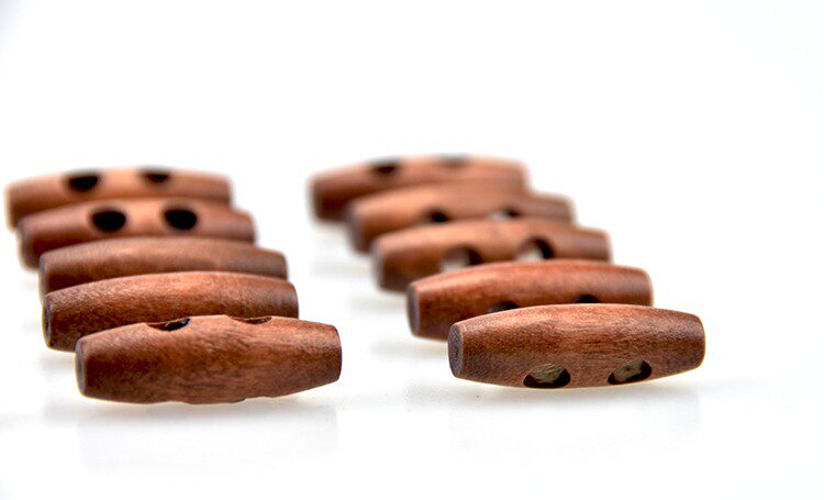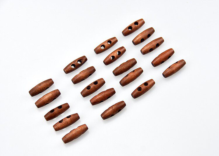 Olive-shaped wooden natural button two-hole long buckle horn button hand-woven accessories button 50 pieces 30mm