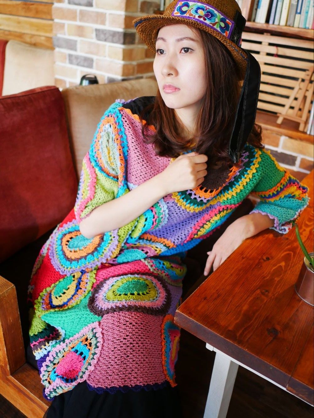 Goldfish Fire ~ Original literature and art of vintage pure hand - made hook color personality cotton dress robe