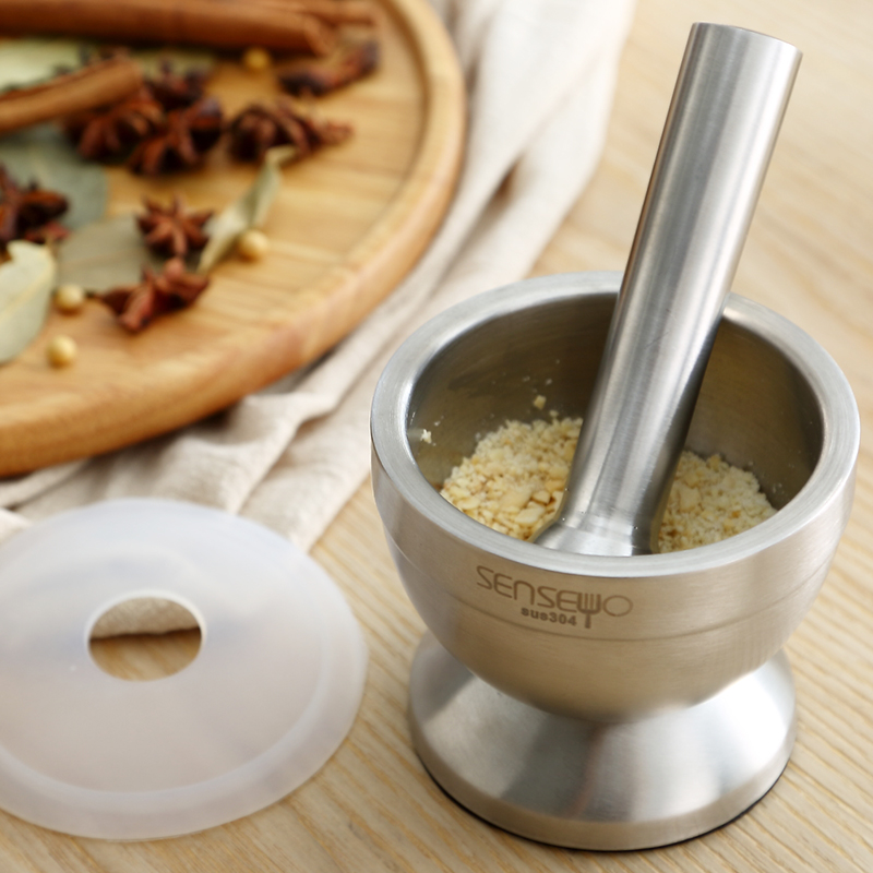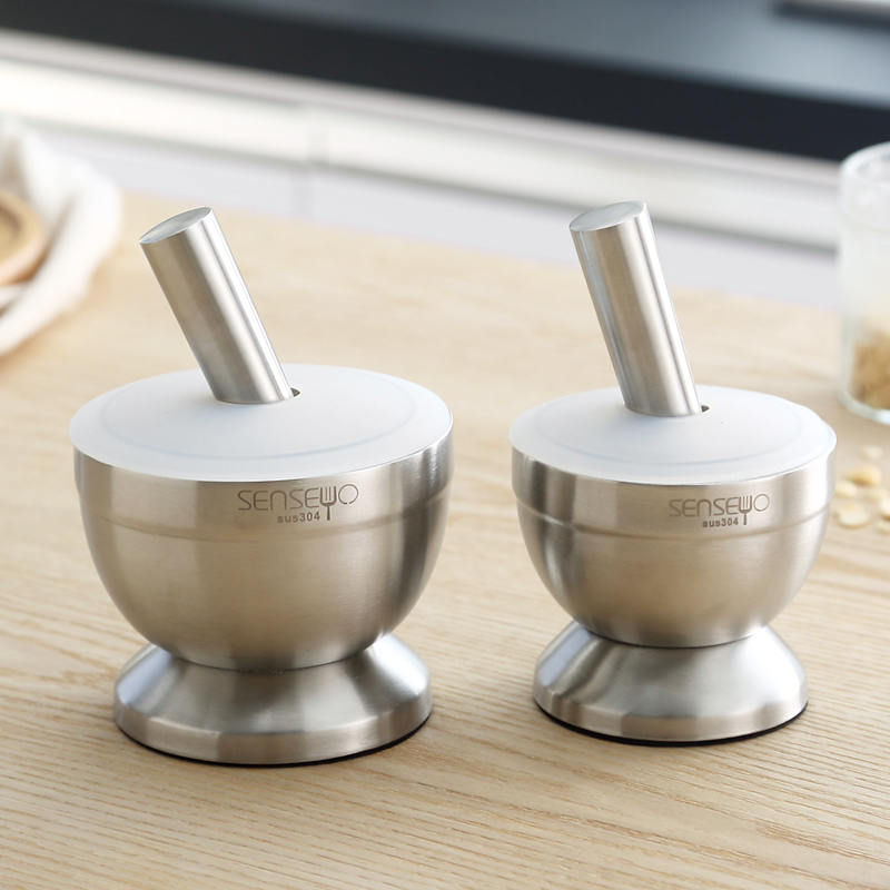 304 stainless steel big number pressure garlic machine mashed mashed mashed mashed garlic clay machine stone mortar household manual garlic mortar to grind the bowl