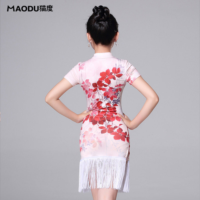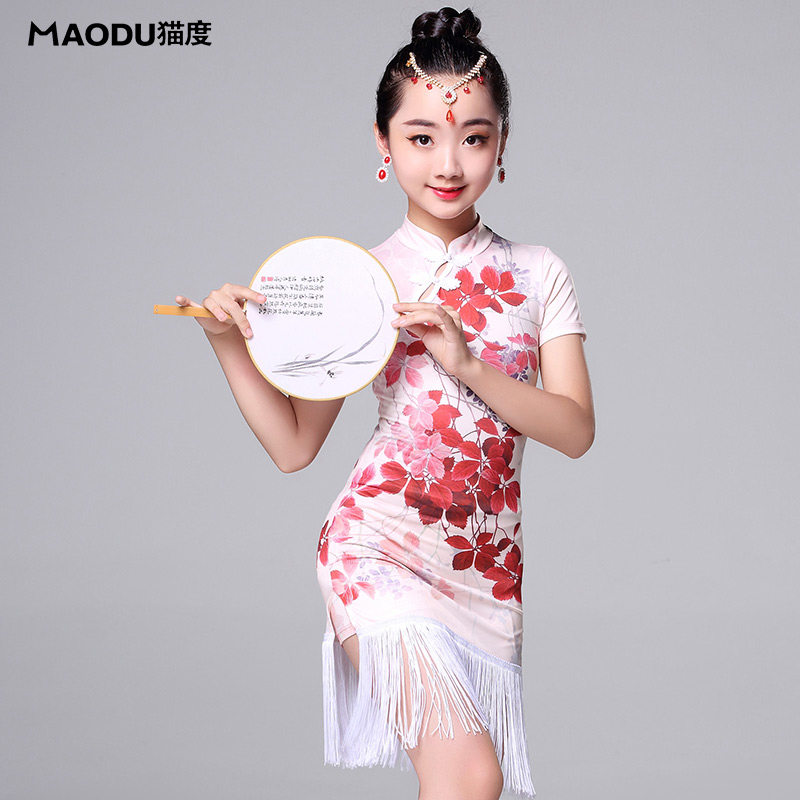 New children's girls cheongsam Latin dance skirt dance practice performance costume classical dance costume competition performance tassel