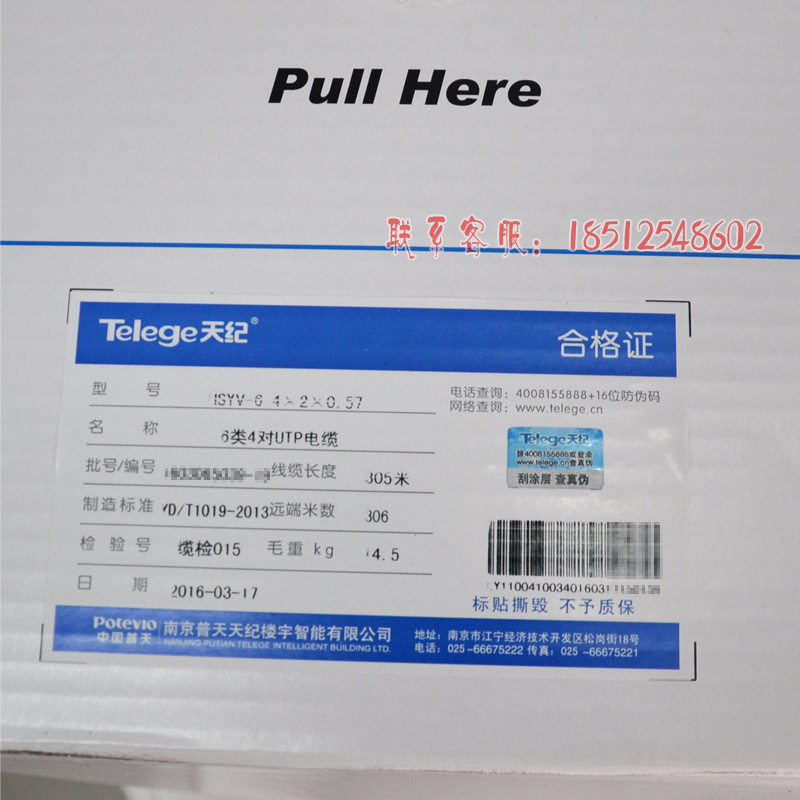 The original Putian Ji network cable Nanjing Pu Tian Ji six categories of unshielded network cable national standard 0.57 line diameter