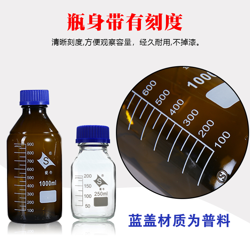 Buffalo blue cover transparent 100ml Shu blue cover transparent 250ml Shu blue cover transparent 500ml Shu blue cover transparent 1000ml Shu Bull blue cover brown 100ml Shu Bull blue lid
