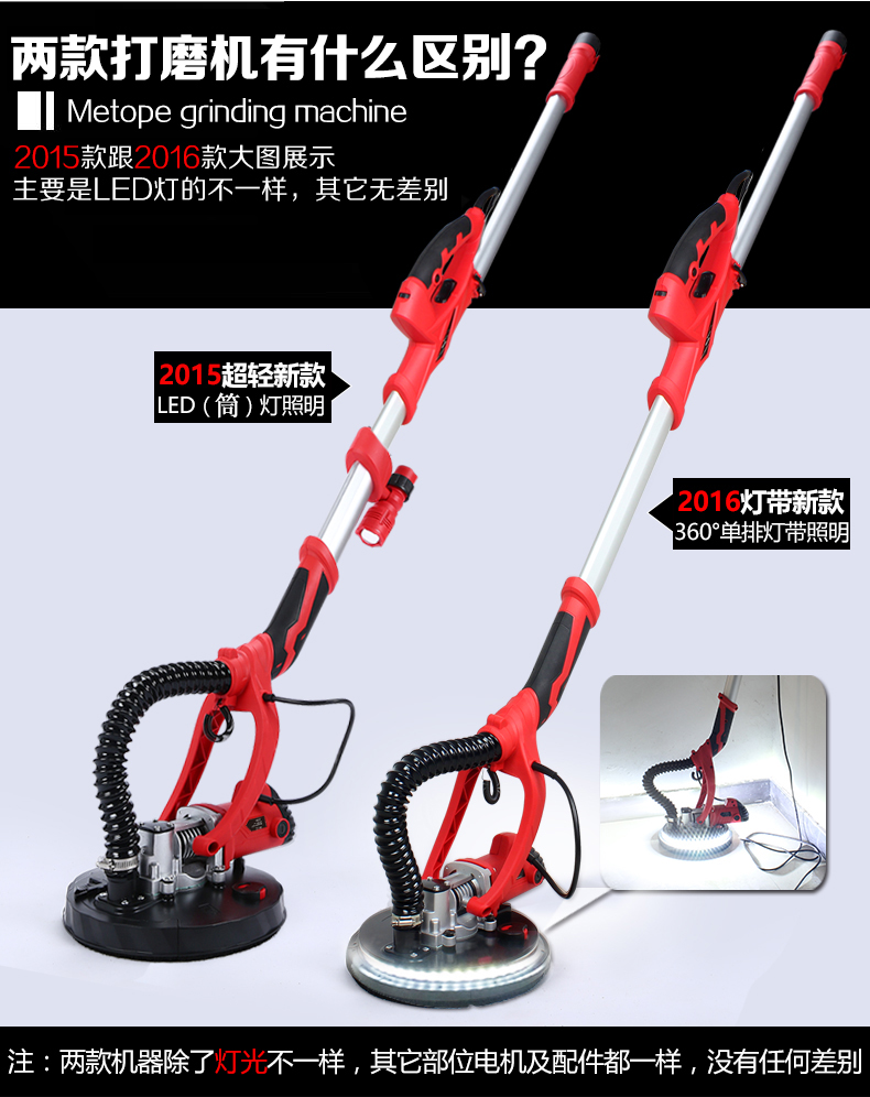 2016 new models with lights come standard with 50 sandpaper long rod sander suction barrel 2015 ultra-light models come standard with 50 sandpaper 15 toolbox folding models come standard with 50 sandpaper diameters