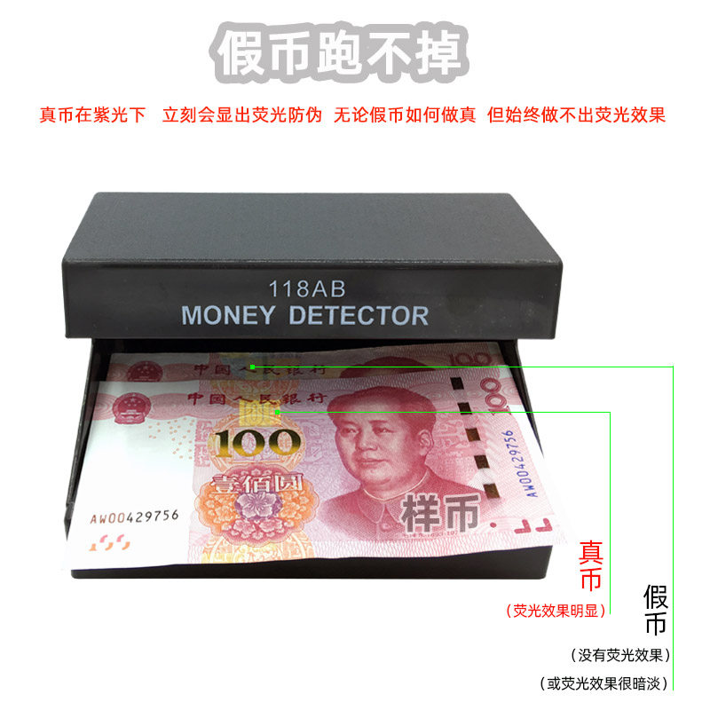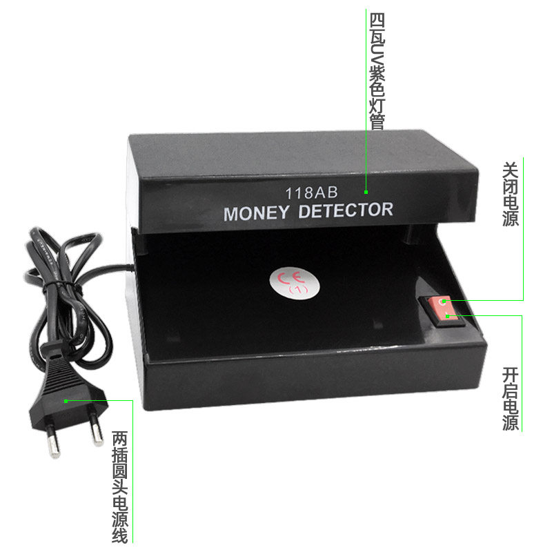 118AB purple light banknote detection fluorescent lamp desktop ultraviolet banknote detection lamp new version of RMB battery plug-in