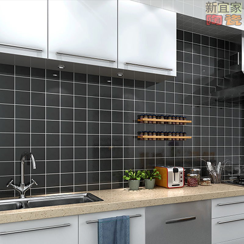 Powder room wall tiles Bathroom tiles Simple 100150 black and white glossy matte flat small square tiles Glazed tiles Kitchen