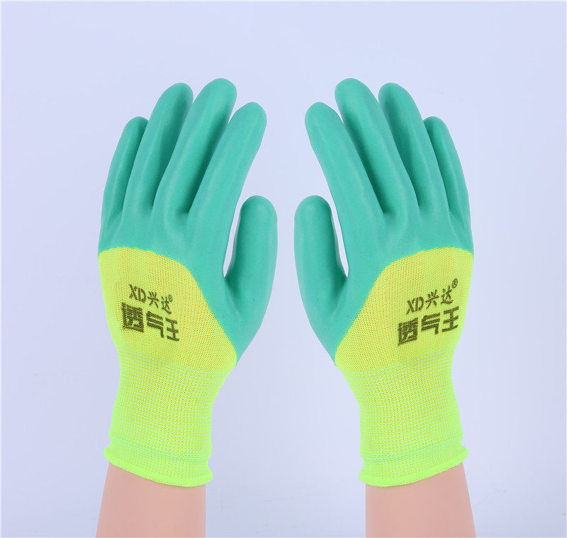 Xingda breathable king T628 nylon latex soft wear-resistant waterproof comfortable labor insurance protective rubber gloves