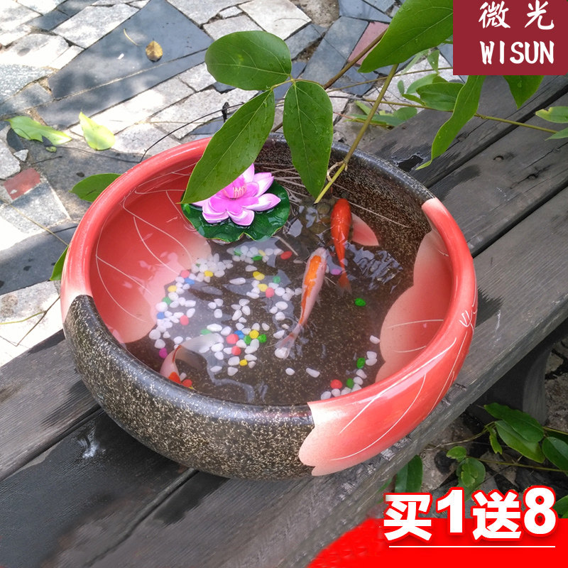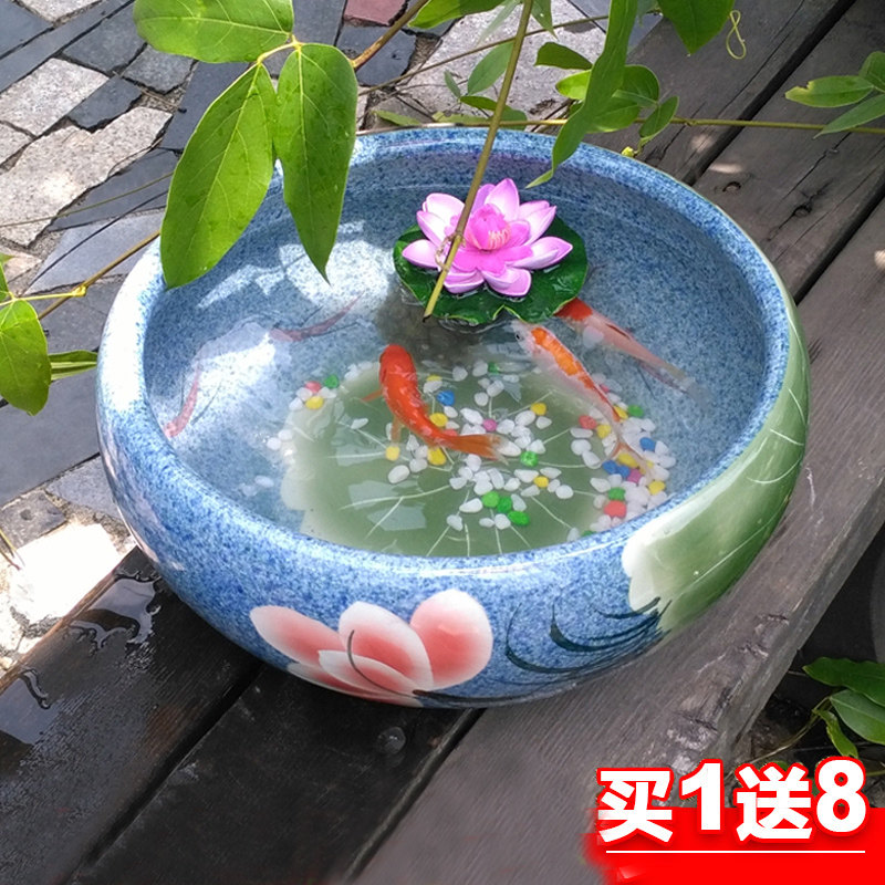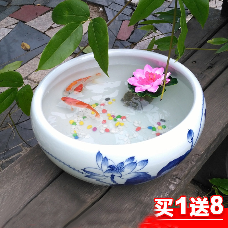 Jingdezhen Ceramics Keeping Fish Big-cylinder Torture Bowl Lotus Bowl Living Room Desktop
