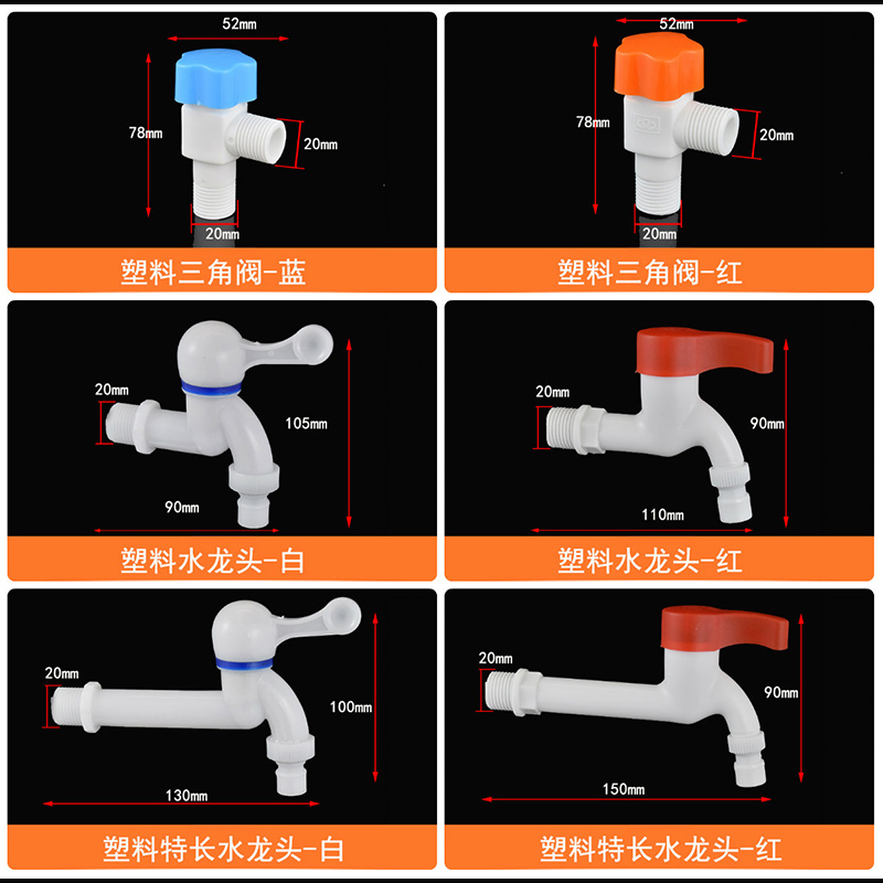 Washing machine faucet single cold faucet transparent white ABS plastic faucet 4 6 points hot and cold water nozzle ceramic core