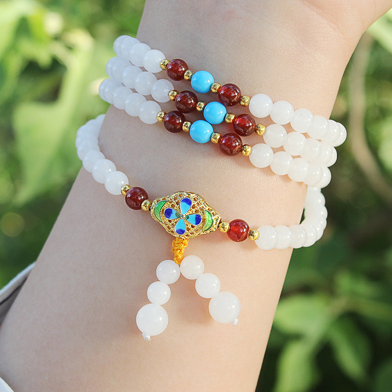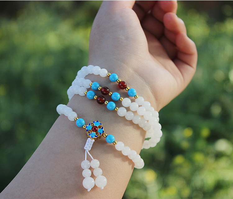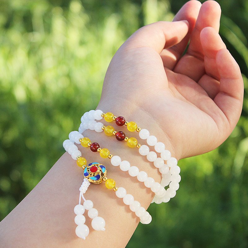 Original natural Xinjiang Kunlun white jade bracelet 108 Jade hand string ladies beaded necklace