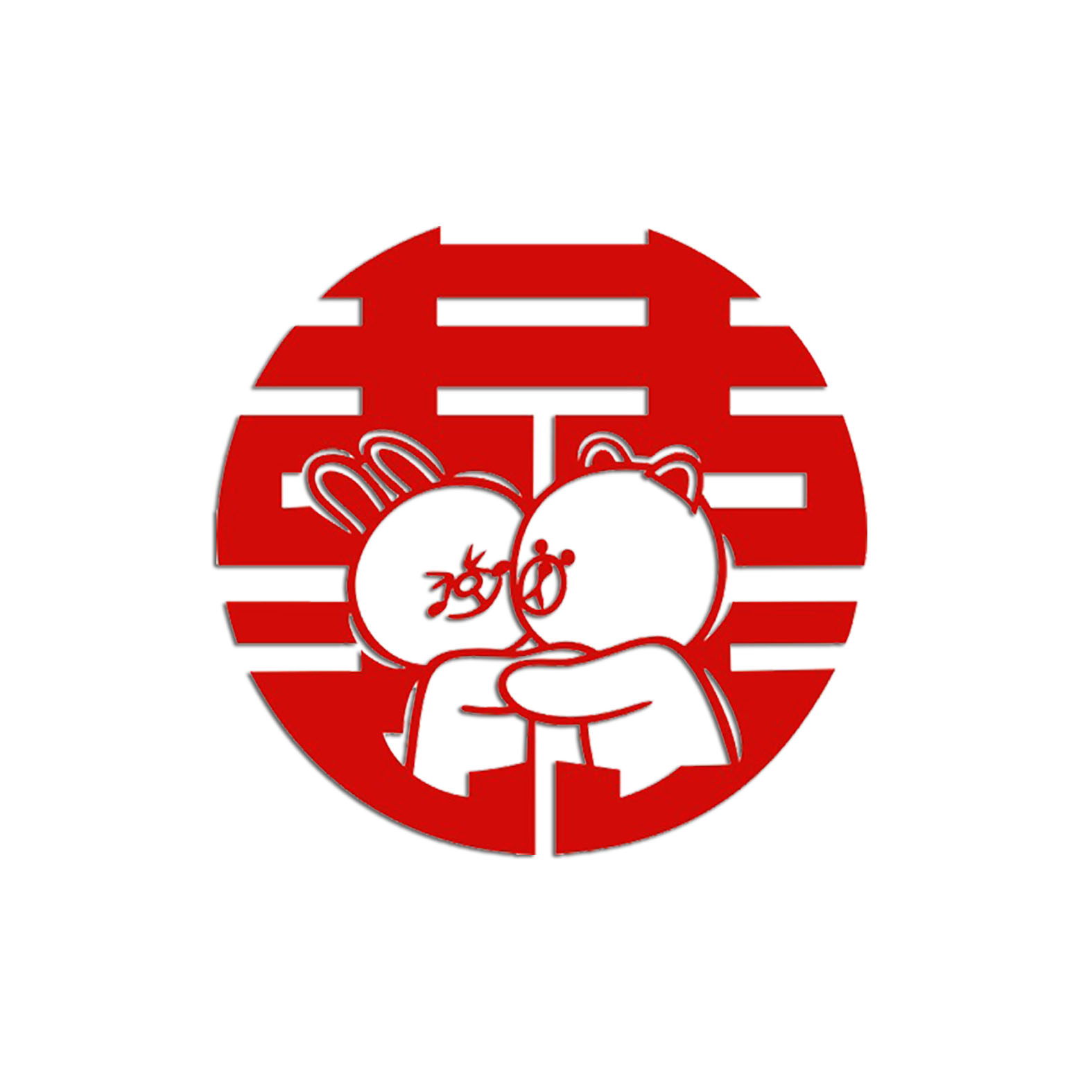 Flocking non-woven line Bear big Rabbit Wedding room decoration Wedding limousine Wedding large red double happiness word window grille customization