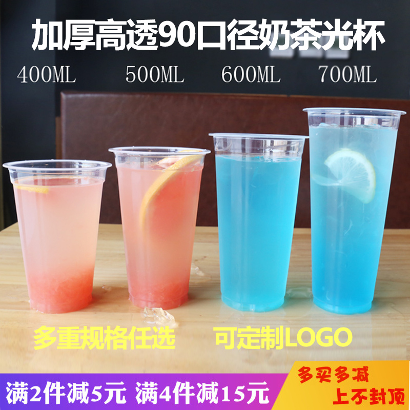 90 caliber milk tea cup plastic cup beverage fruit juice disposable cup 500 700ml transparent light cup with lid