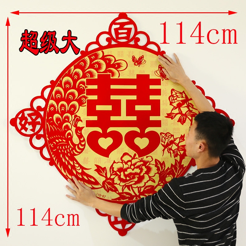 Happy word wedding door Large personality creative room Large Happy word Large double happiness wedding room decoration decoration Xizi