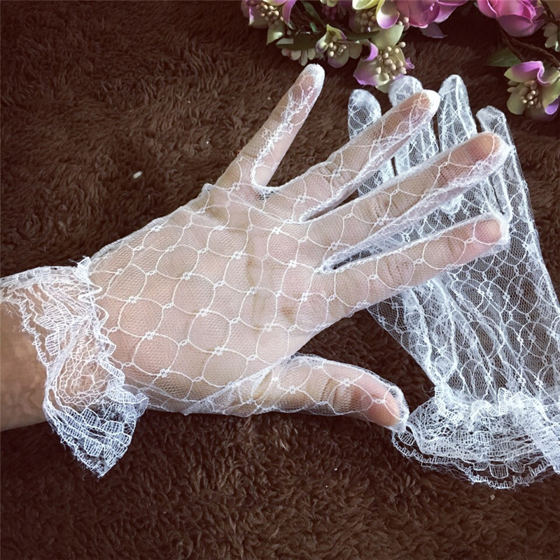 Korean bridal gloves White wedding wedding short mesh ruffle finger wedding gloves Wedding wedding