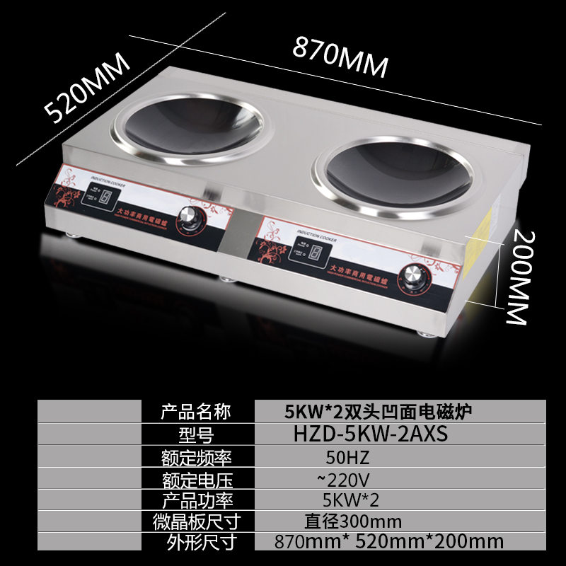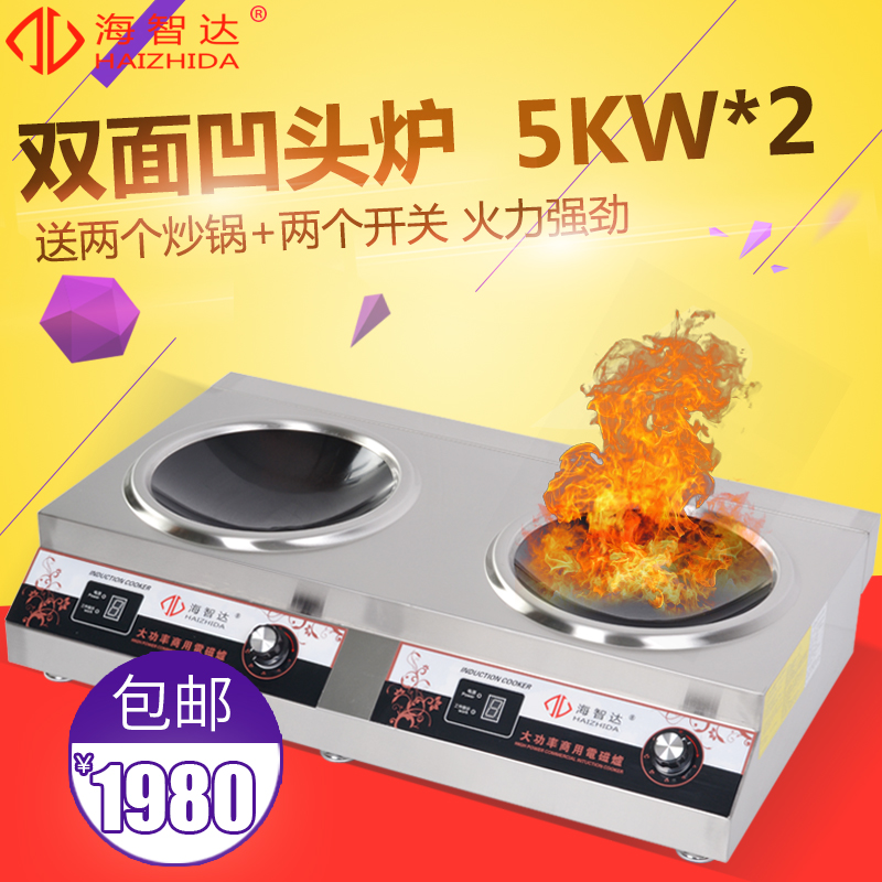 Haizida commercial induction cooker 5000w double-head concave stove Double-head 5KW concave frying stove High-power induction cooker double-head