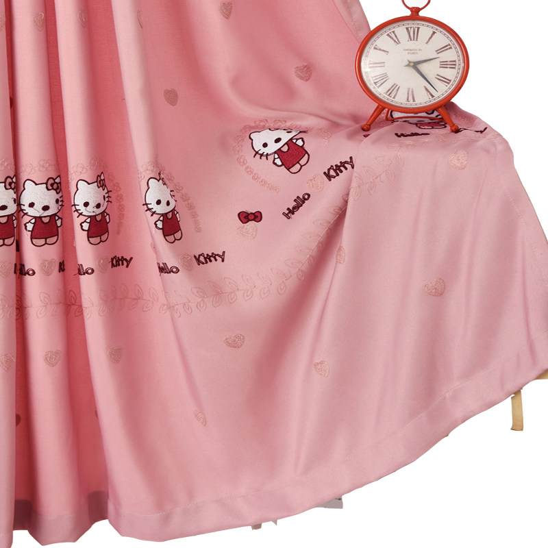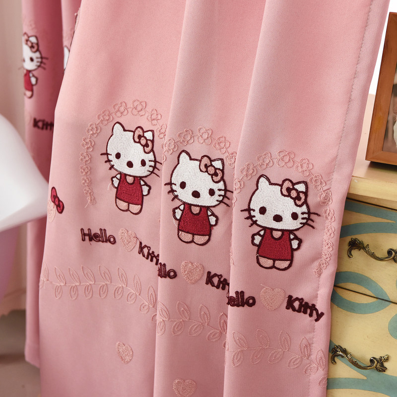 Children KT cat cartoon cotton linen embroidered curtain yarn pink Hello window curtain girl bedroom Half shading finished product