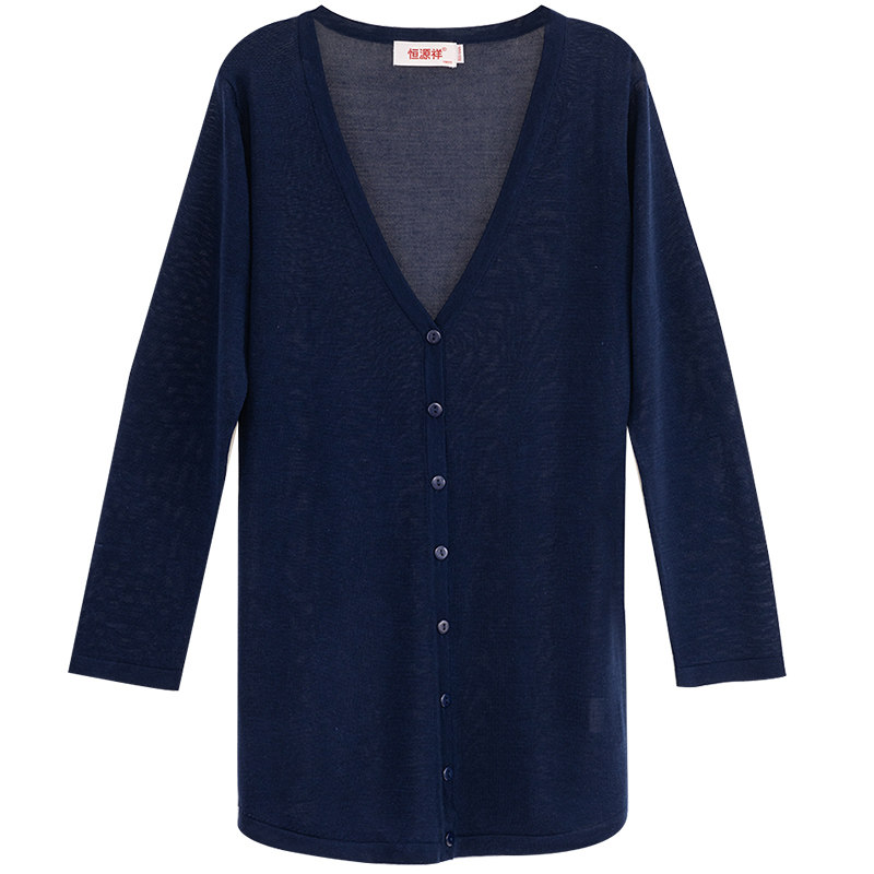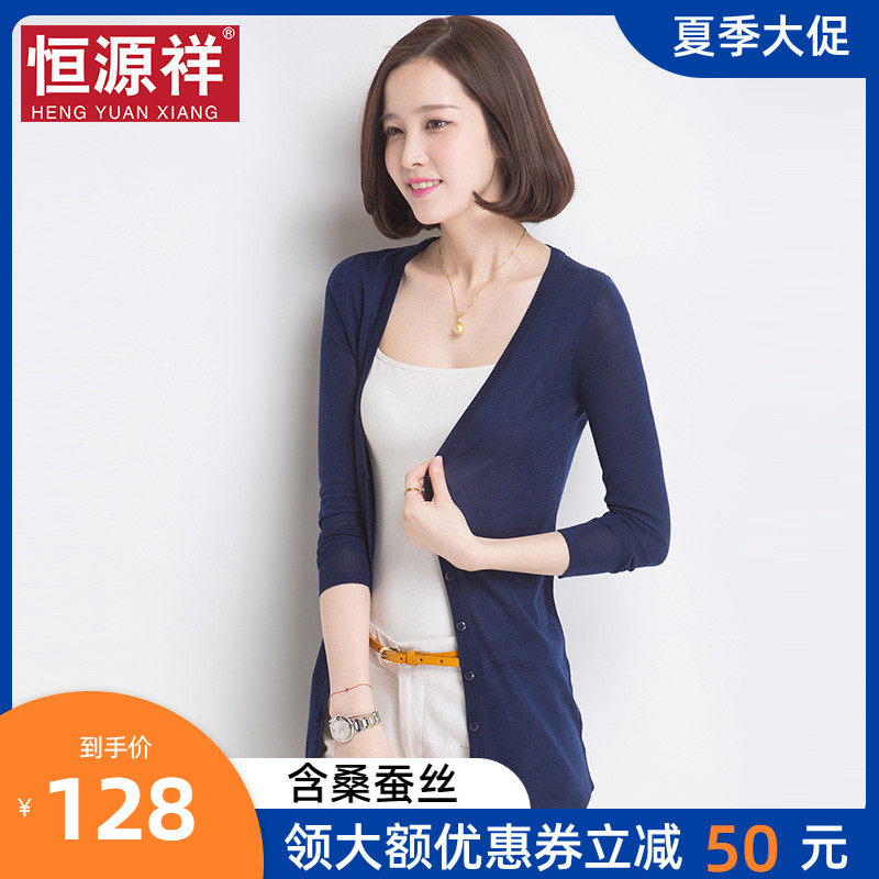 Hengyuanxiang ice silk sunscreen clothes women's outer cloak thin air conditioning shirt medium and long knitted cardigan jacket shawl spring and autumn outer wear