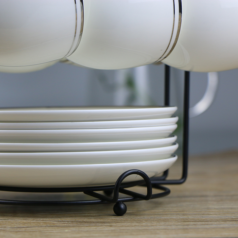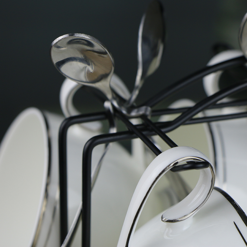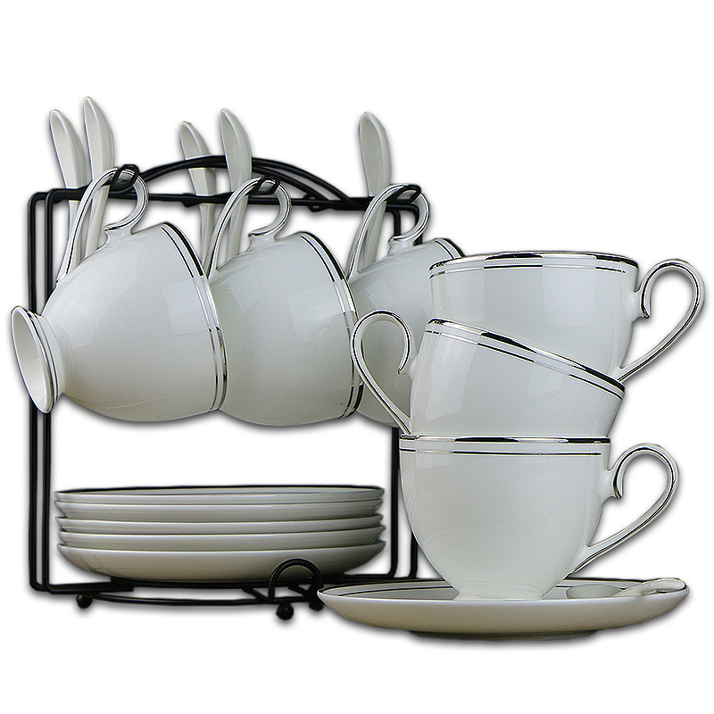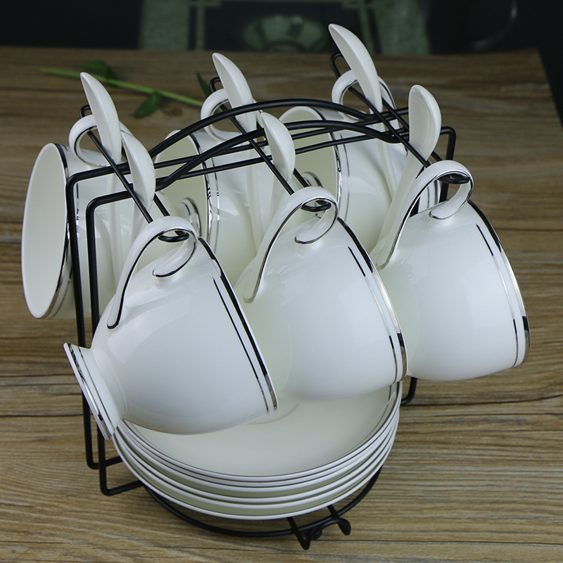 Eurostyle minimalist silver edge coffee cup bone porcelain suit Instyle afternoon tea cup office 6 pieces of coffee furniture with shelf