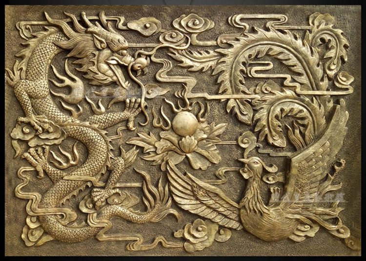 Sandstone reliefs mural background wall room inside and outside decoration mural dragon phoenix Chinese Logo wall sand sculpted glass fiber