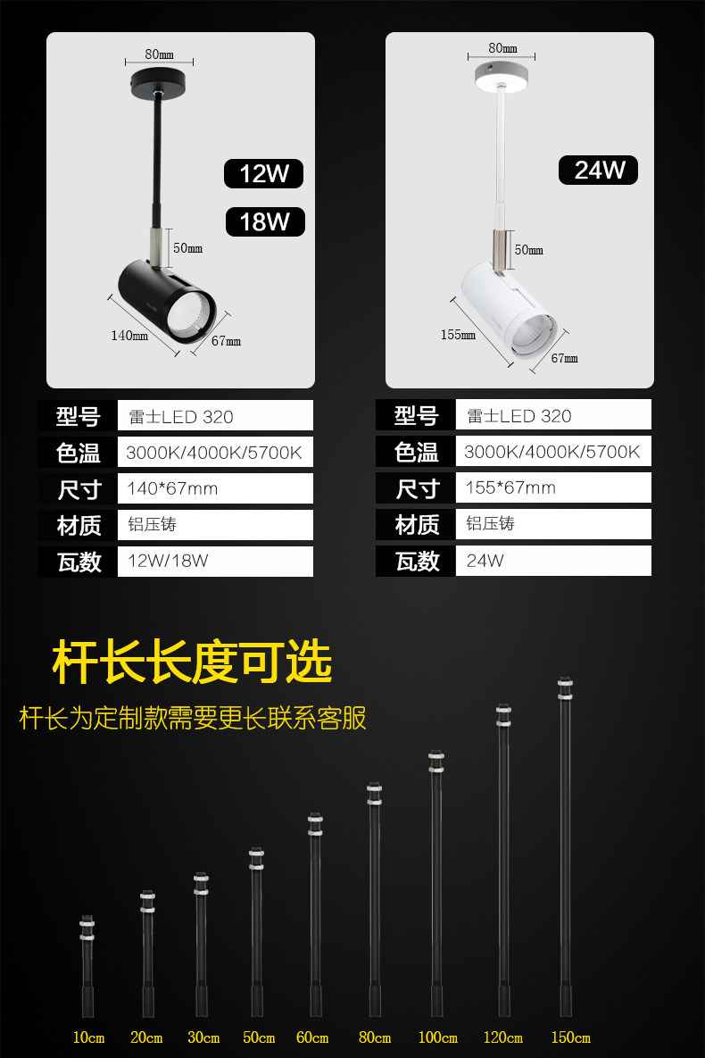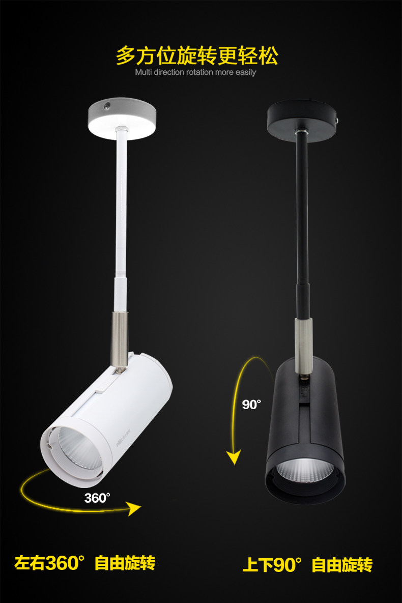 Resserled suction top spot light pole ceiling lamp Ming loaded with hanging pole COB rail light shop showroom spotlight 12W