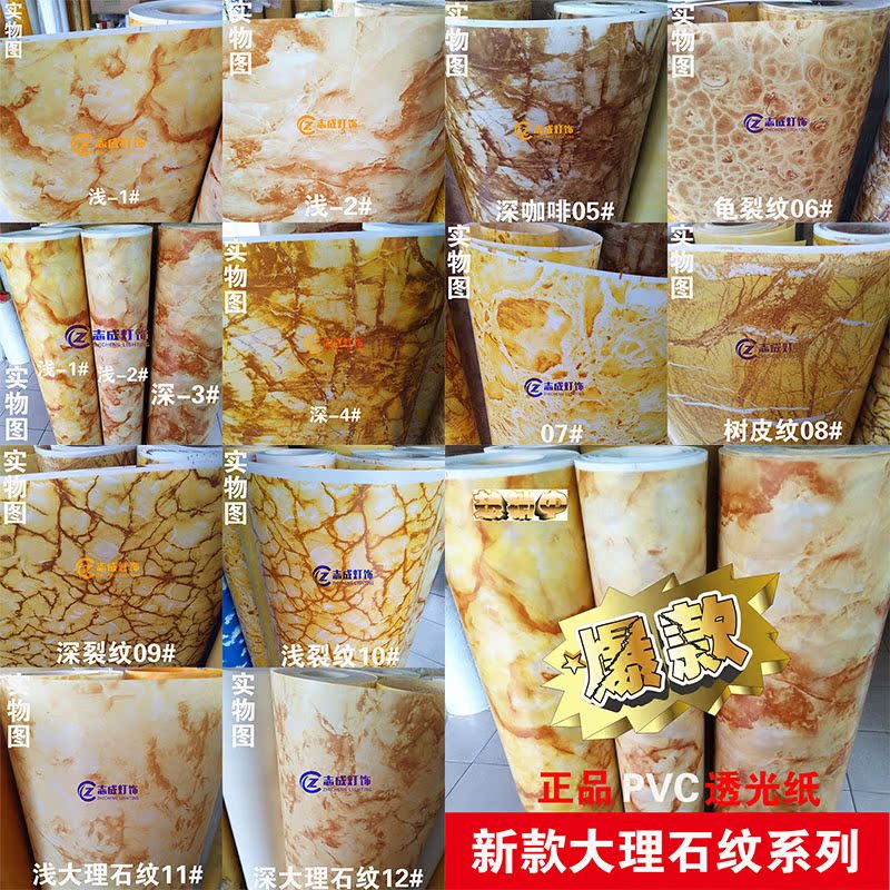 Material Goat Leather Paper PVC Light Transmission Paper Lampshade Material Yellow Imitation Marble wood Carved Flower Lattice light box paper