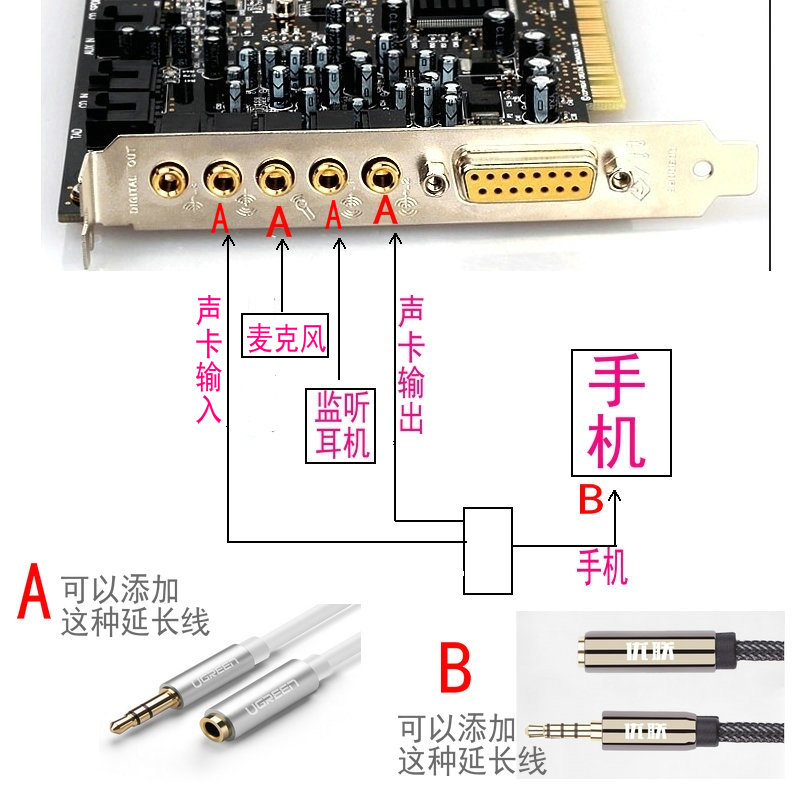 Mobile phone live conversion line guest house sound card Aiken sound card conversion line built-in sound card transmobile phone live line