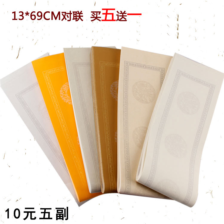 Wax-dyed imitation ancient five-words book house small couplets for half cooked Xuan Ming clean water Invalesto Xuan paper Calligraphy special Xuan paper