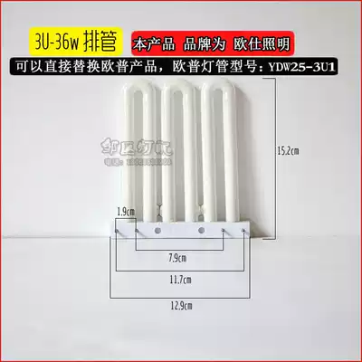 Oushi lighting 3U row tube 26W36w45w4 needle kitchen and bathroom three primary color ceiling lamp energy-saving lamp tube flat four-pin white light