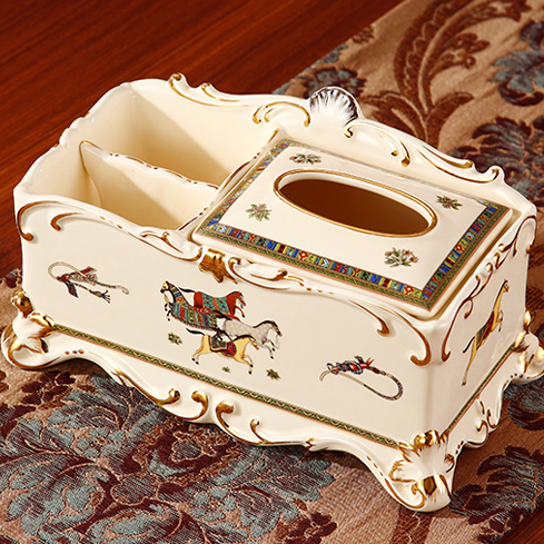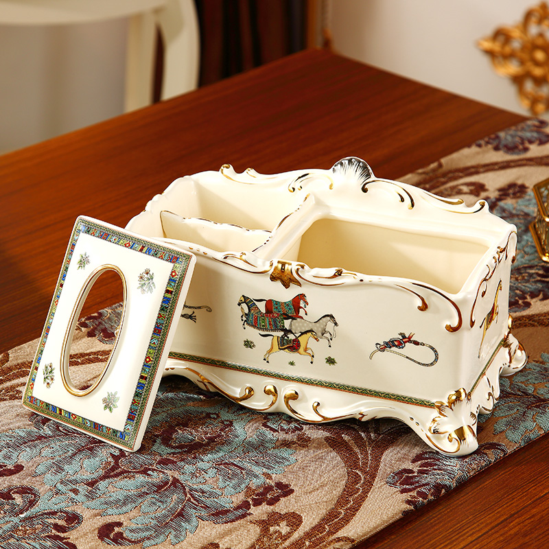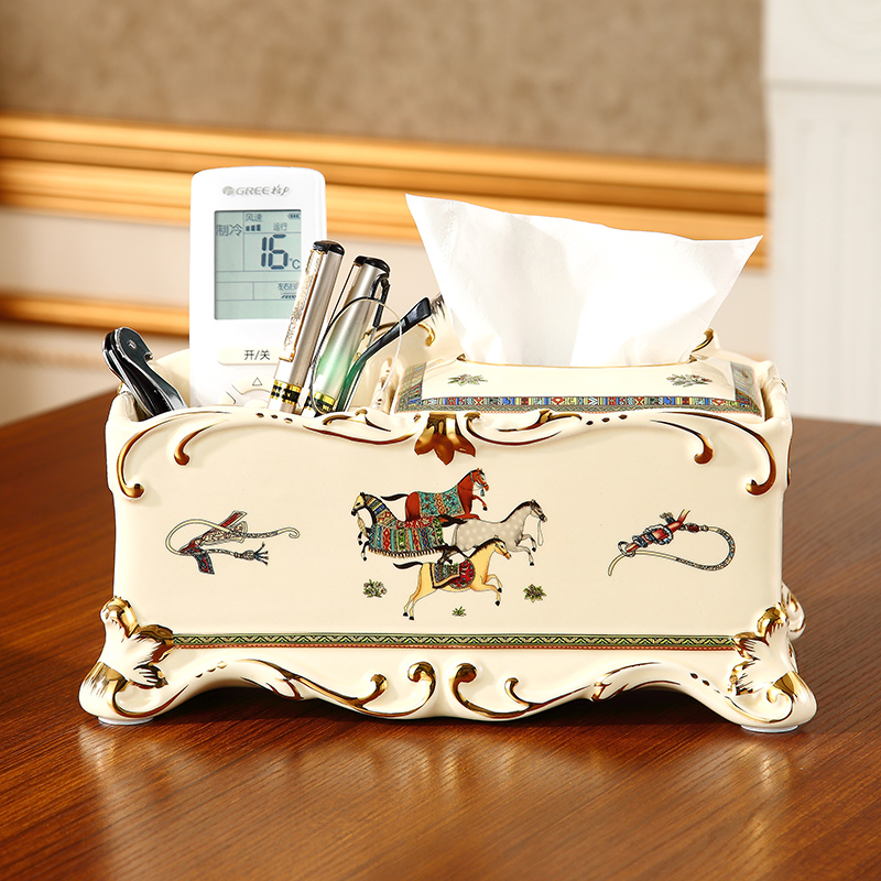 Eurostyle ceramic paper towel box American multifunction remote control with toilet paper box luxurious retro living room tea table hem