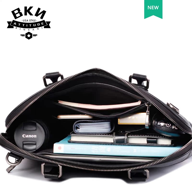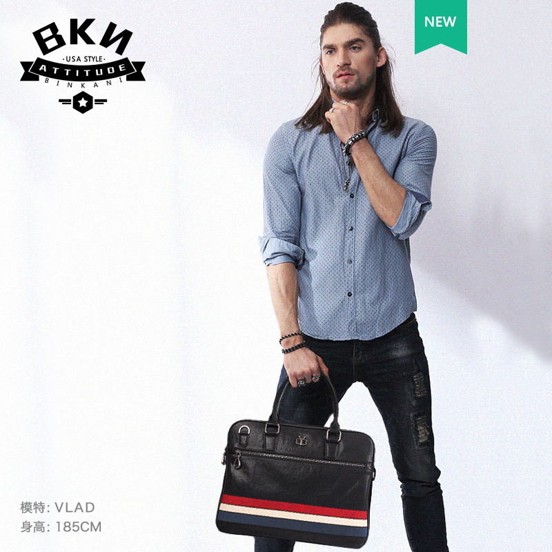 French binkani handbag men's leather business casual briefcase men's first layer cowhide men's bag fashion large capacity