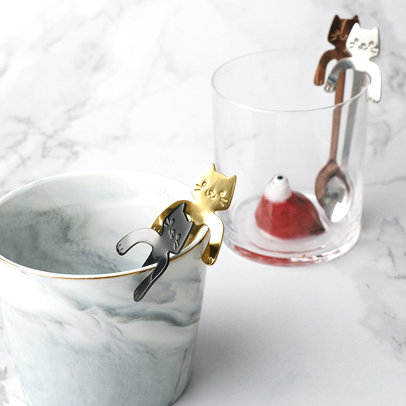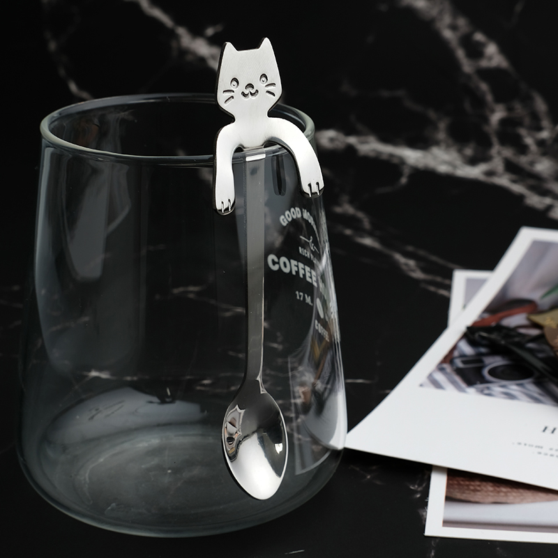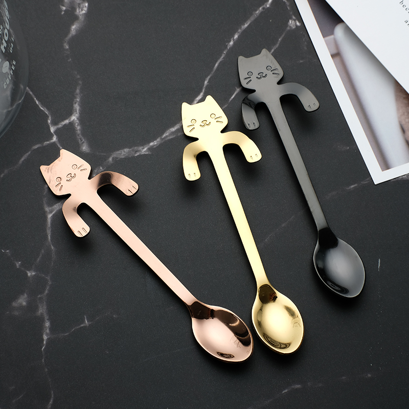 Add Some Lotte 304 Stainless Steel Coffee Spoon Cat Cute Little Spoon Hung Side Spoon Stir Spoon Ice Cream Spoon Seasoning Spoon