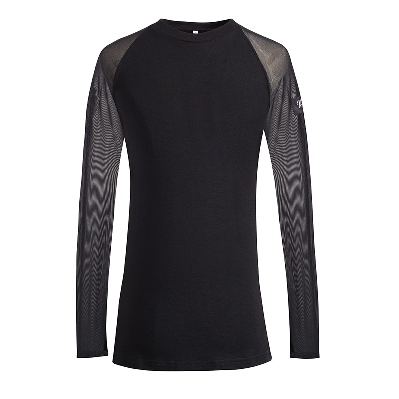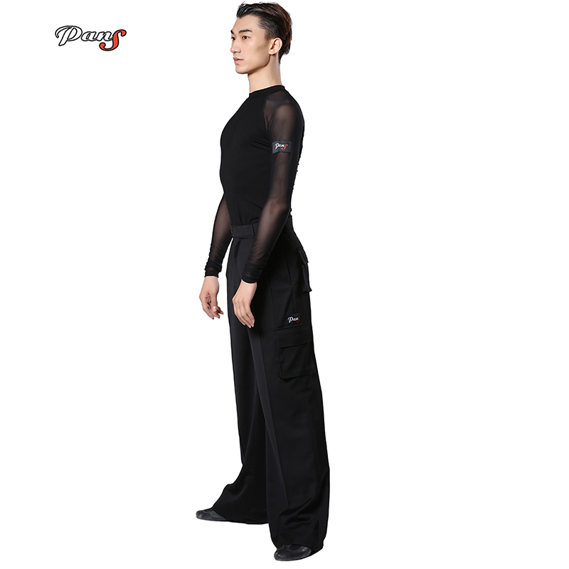 Pan dance suit Latin dance men's top Modern training suit T-shirt Practice suit Cross-shoulder sleeve pullover small neckline
