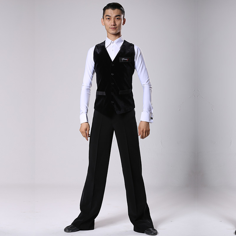 Pan's Dance Suit Men's Morden Dance National Mark Dance Short Horse Chia Pony Front Silk Suede Back Brocade Cotton Performance Suit Competition Suit